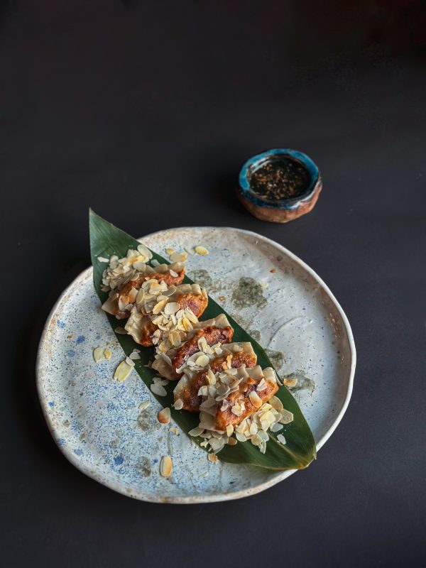 tofu/migdały/por/boczniak/pak choi/oshinko/szparagi/czosnek/edamame/imbir