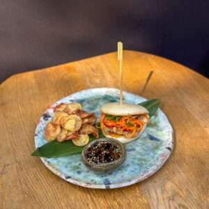 Bułeczka BAO z chipsami z patatków i ogórkami zuke